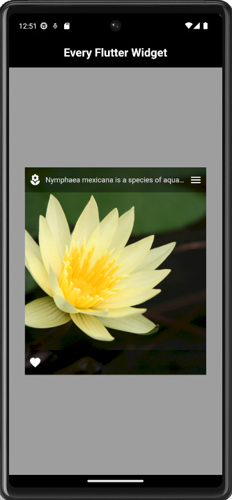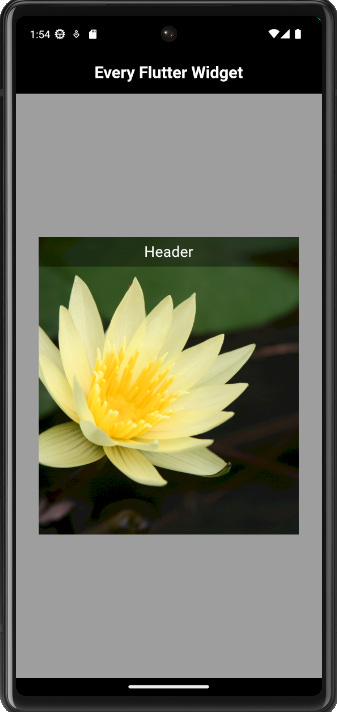 This widget creates a tile that is commonly used in a grid layout. It allows you to display content with an optional header and footer. The footer is the widget displayed at the bottom of the tile and the header is the widget displayed at the top of the tile, you can use any widget but a GridTileBar is typically used in those positions.